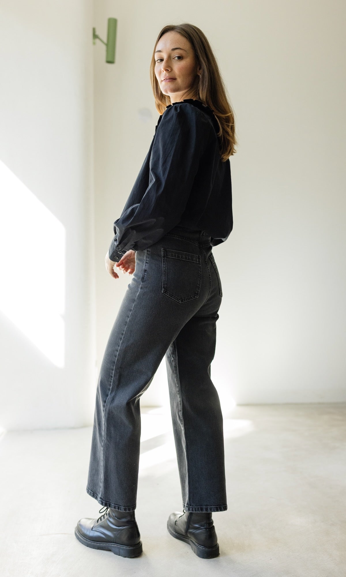 Absolutes Lieblingsteil! Bequem, weich, feminin und eine wunderbare Farbe (leicht verwaschenes Schwarz) zum Kombinieren. Sie passt, wie beschrieben- da sie minimal nachgibt beim Tragen, kann man sie gut in der jeweils kleineren Größe bestellen. Bei 1,69m Körpergröße hat sie bei mir die perfekte Knöchellänge.