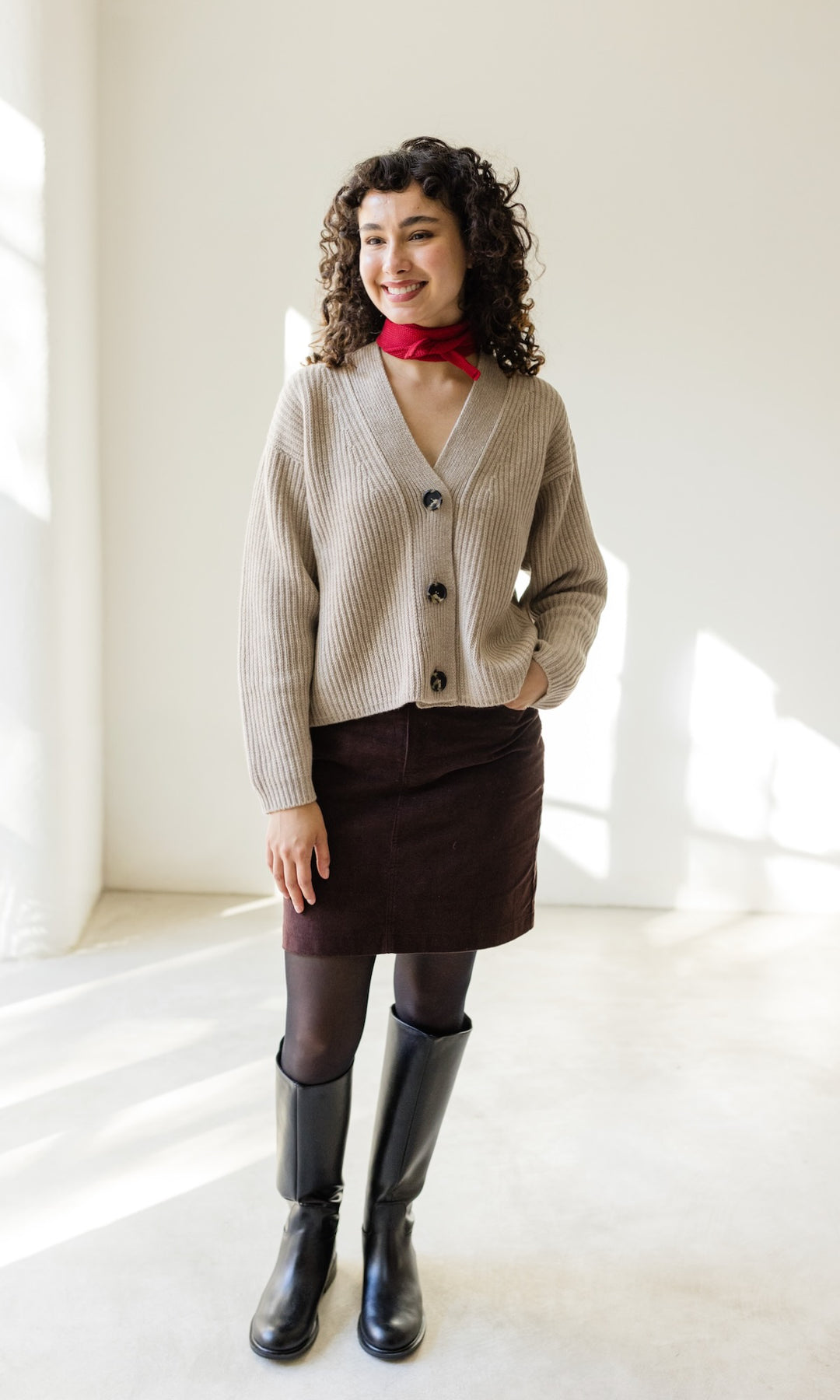 Genau das, was ich schon lange gesucht habe - ein Cardigan, der warm, mit Knöpfen, aus weichem Material, bequem geschnitten und in einer neutralen, aber warmen Farbe ist. Ich bin einfach glücklich, ihn nun in meinem Kleiderschrank zu wissen. Vielen Dank für eure wunderbaren Teile!
