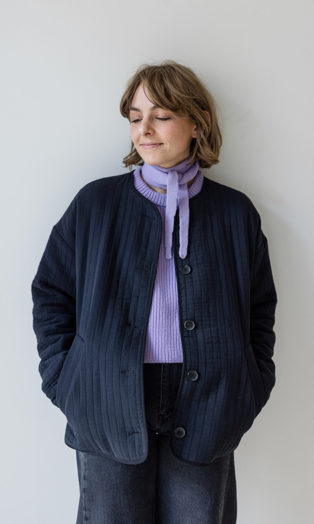 Kleiner Strickschal zum Binden Flieder aus Bio Baumwolle