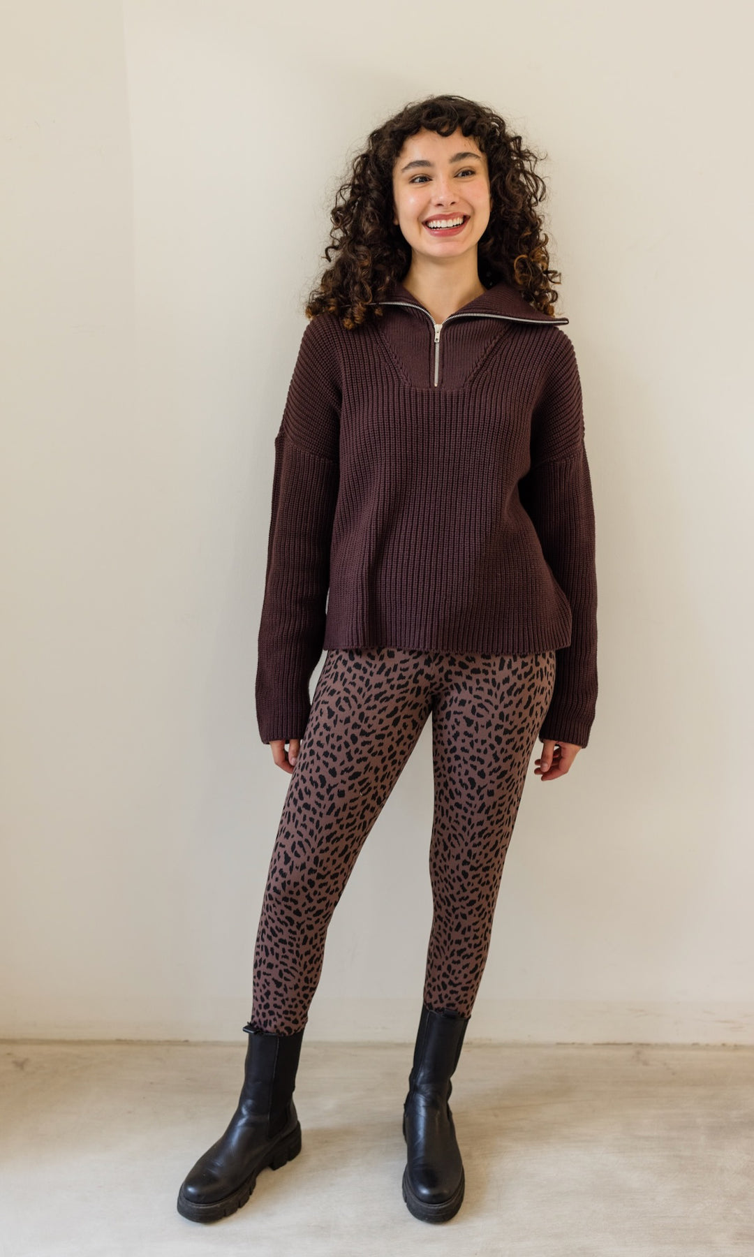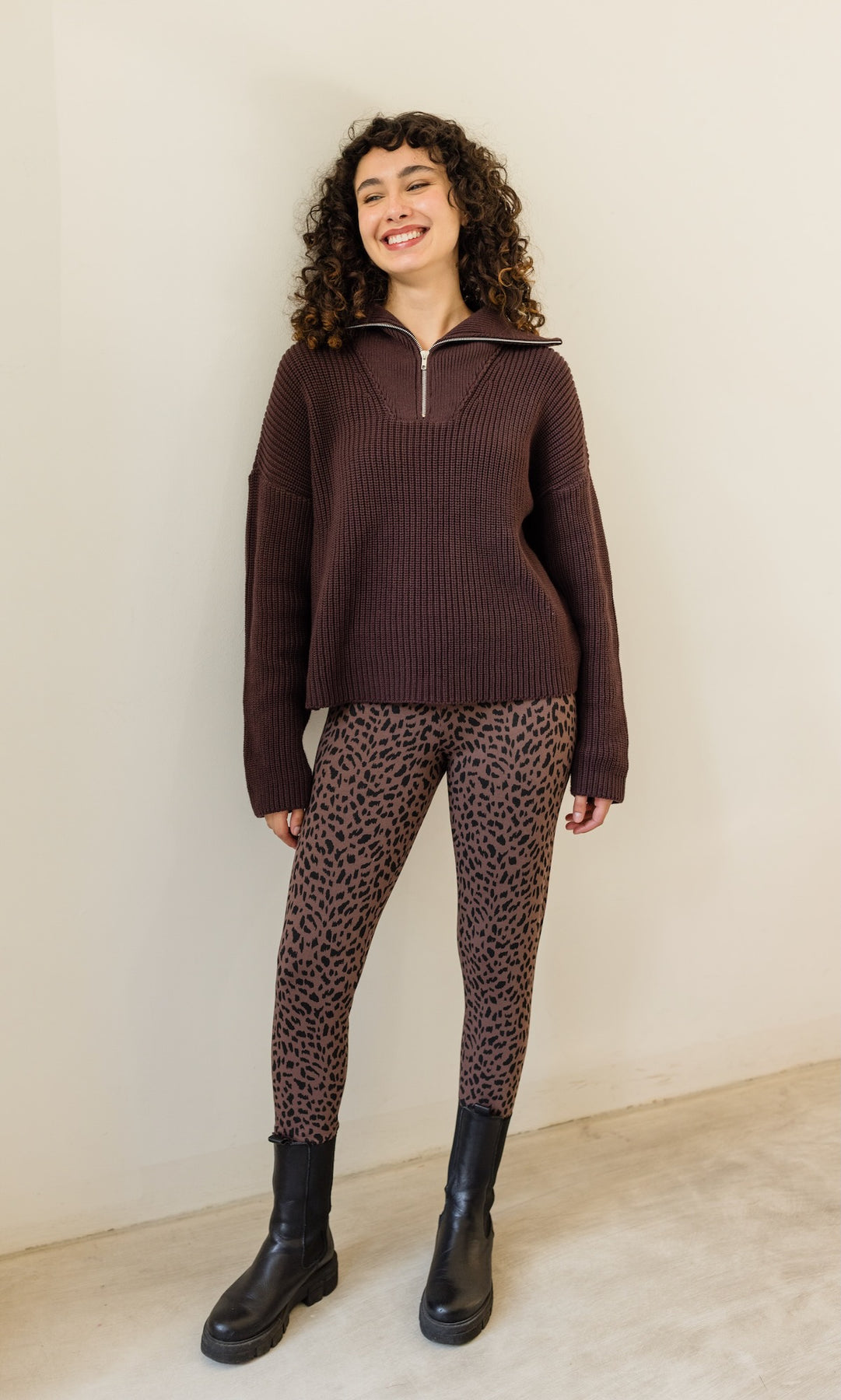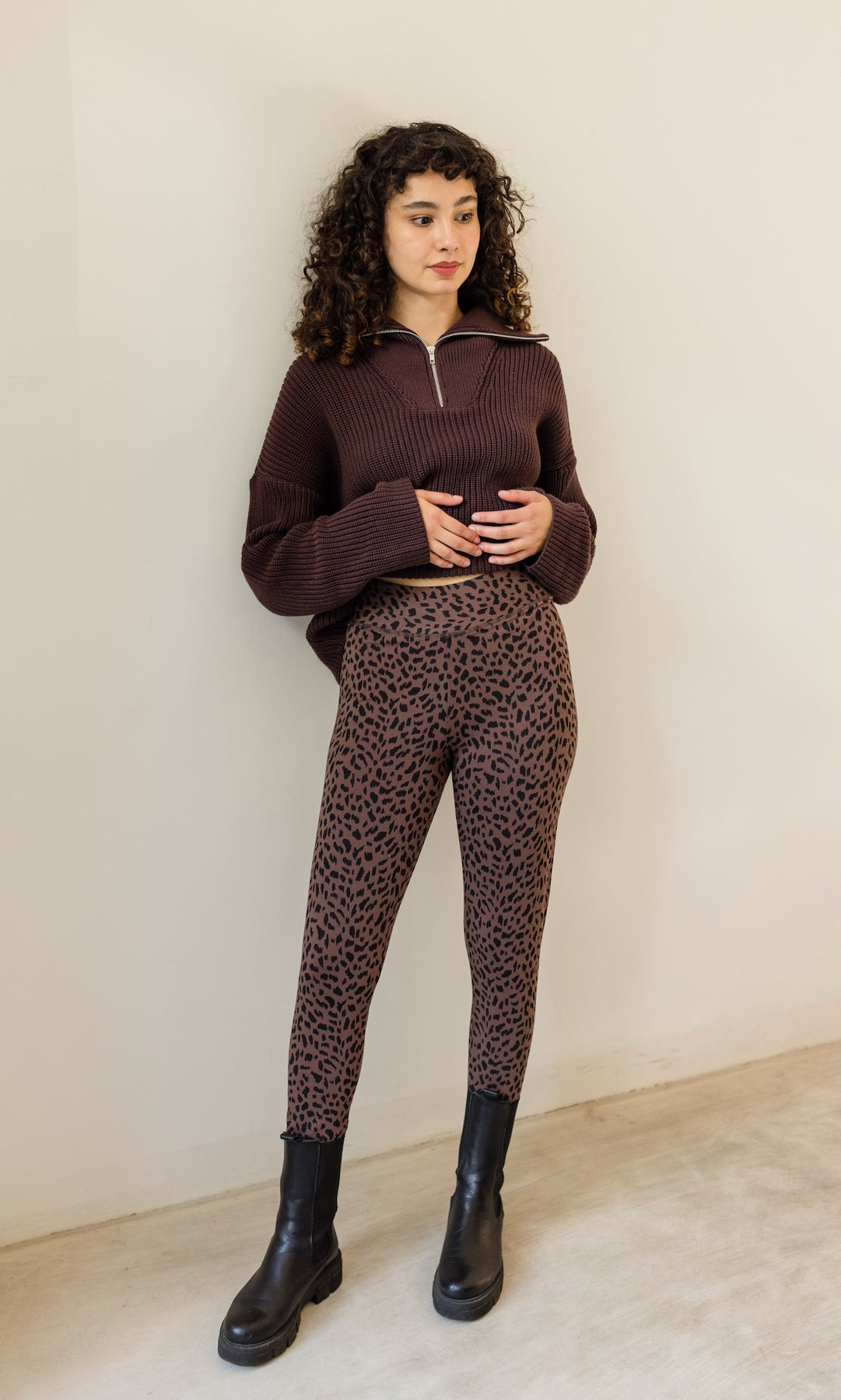 Das elastische Baumwollbündchen am Bauch macht diese dehnbare Leggings aus wunderbar weichem Lyocell besonders bequem. So kann der hohe Bauchbund ganz normal oder auch umgeschlagen getragen werden, um den Sitz der Leggings anzupassen. Wir bieten sie in einem braunen Leo Druck und einem schlichten Schwarz an. Als Loungewear für daheim oder lässig gestylt mit z.B. Pulli oder Cardigan - diese Leggings ist ein wunderbar bequemer Allrounder!