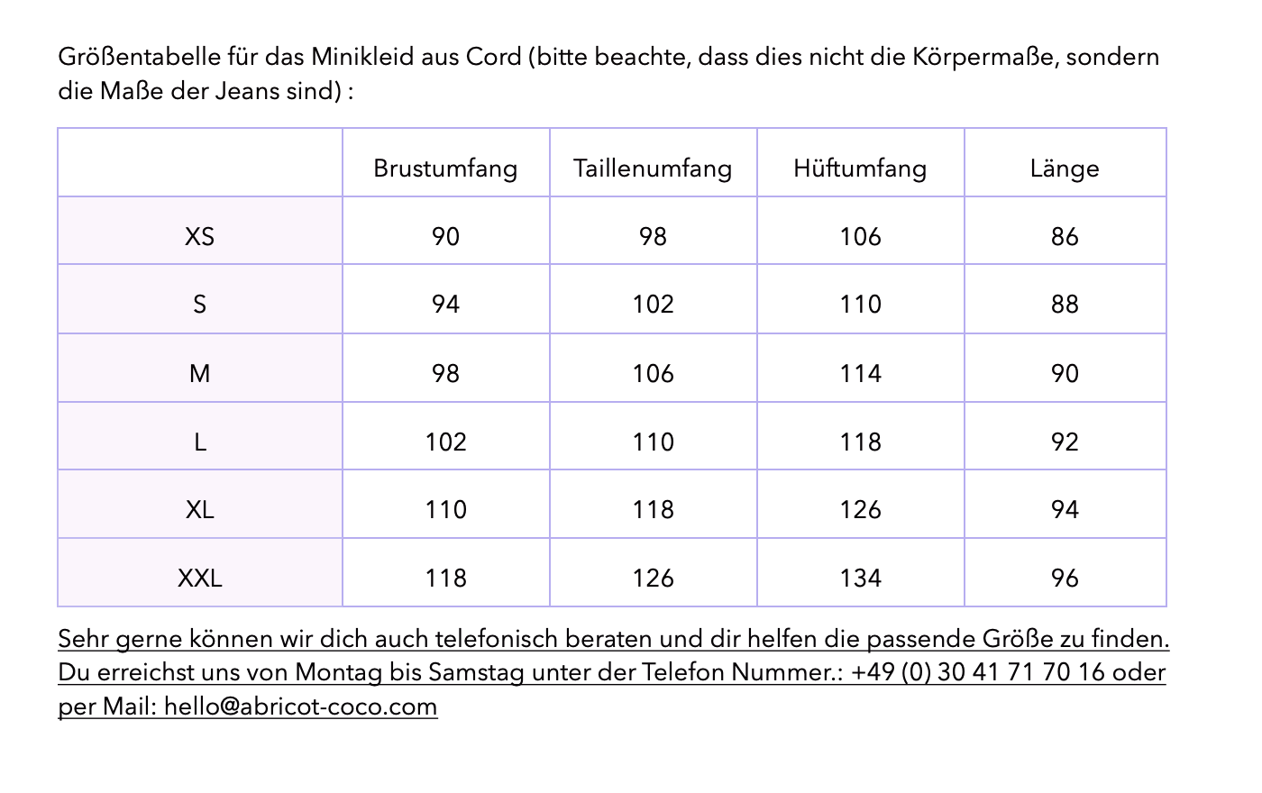 Sehr gerne können wir dich telefonisch beraten und dir helfen die passende Größe zu finden: 030 41 71 70 16