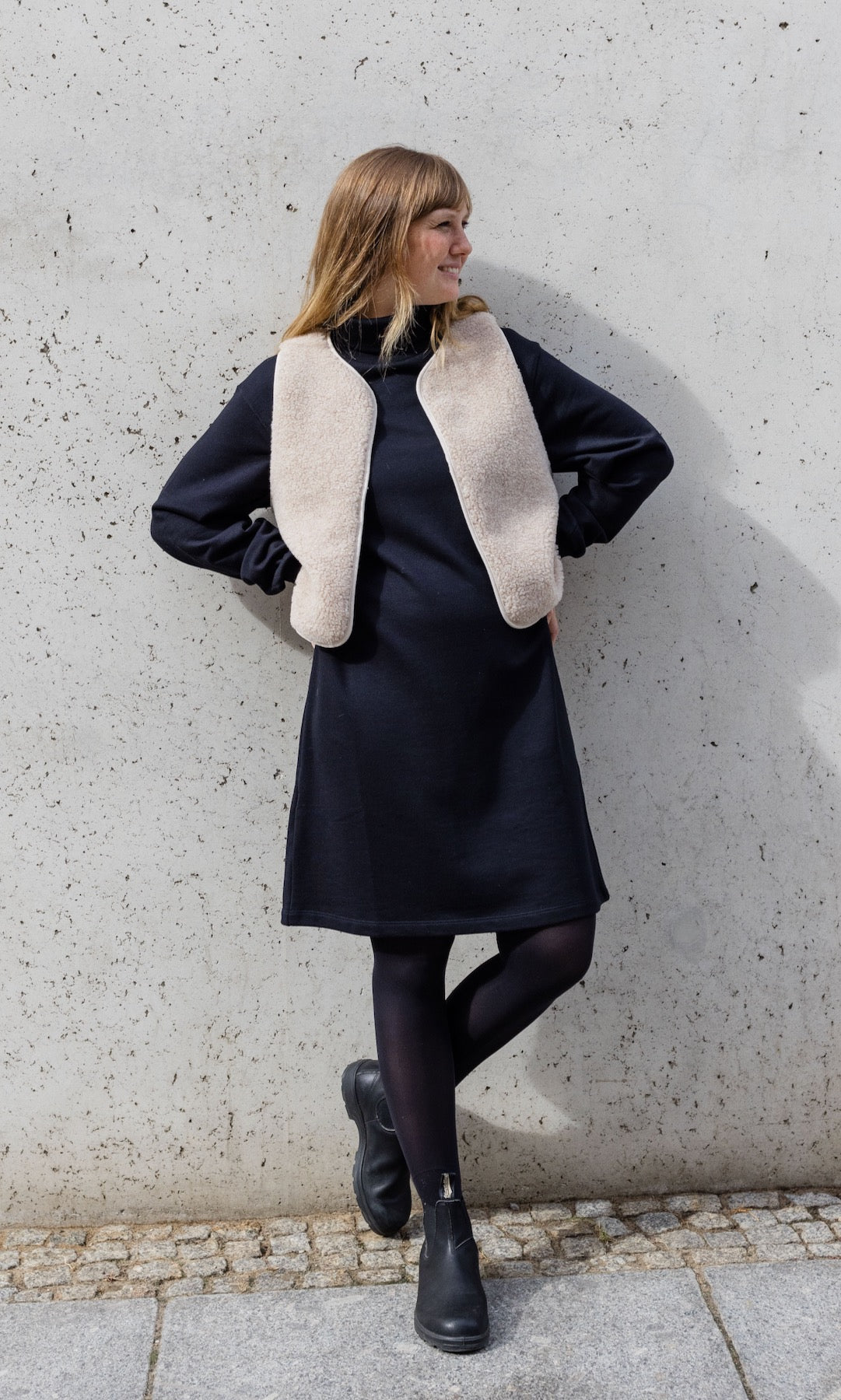 Unser super weiches Sweatkleid Lou ist ideal für kuschelige Herbst- und Wintertage. Der hohe Kragen und die angenehme Baumwoll-Modal-Mischung halten dich schön warm. Die Reißverschlüsse in den Seiten ermöglichen dir problemlos das Stillen. Unser Stillkleid Lou in schwarz ist vielseitig kombinierbar und der perfekte Allrounder für jeden Tag.