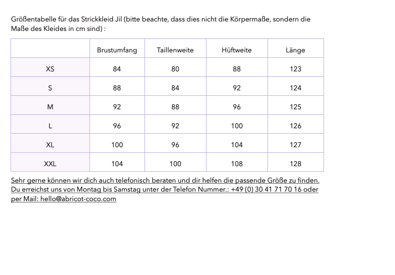 Sehr gerne können wir dich telefonisch beraten und dir helfen die passende Größe zu finden. Du erreichst uns unter: +49 (0)30 41 71 70 16