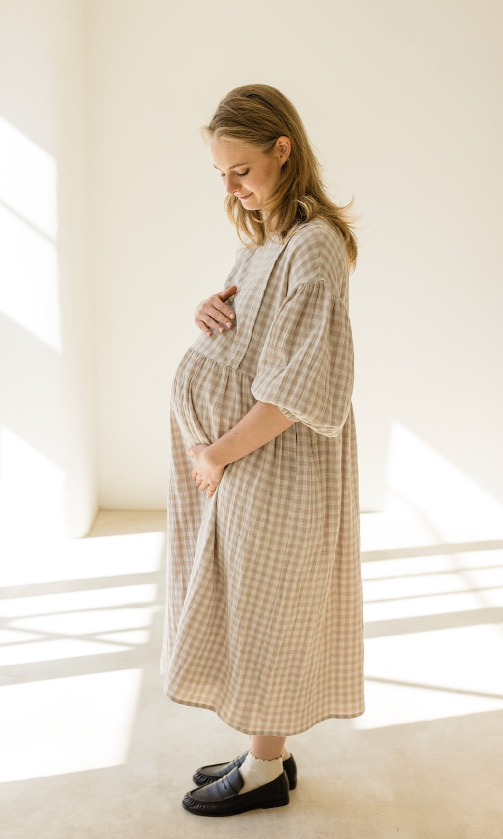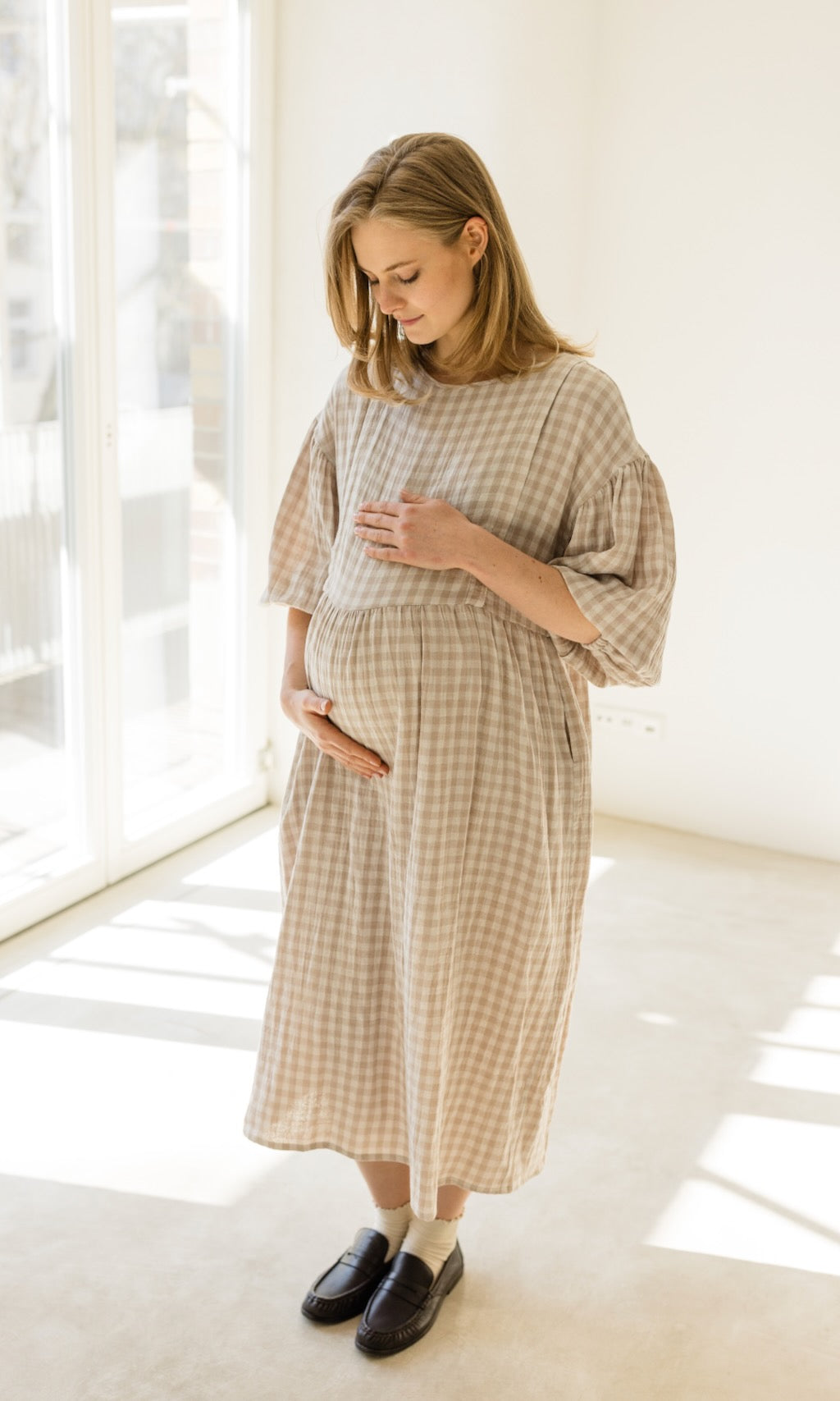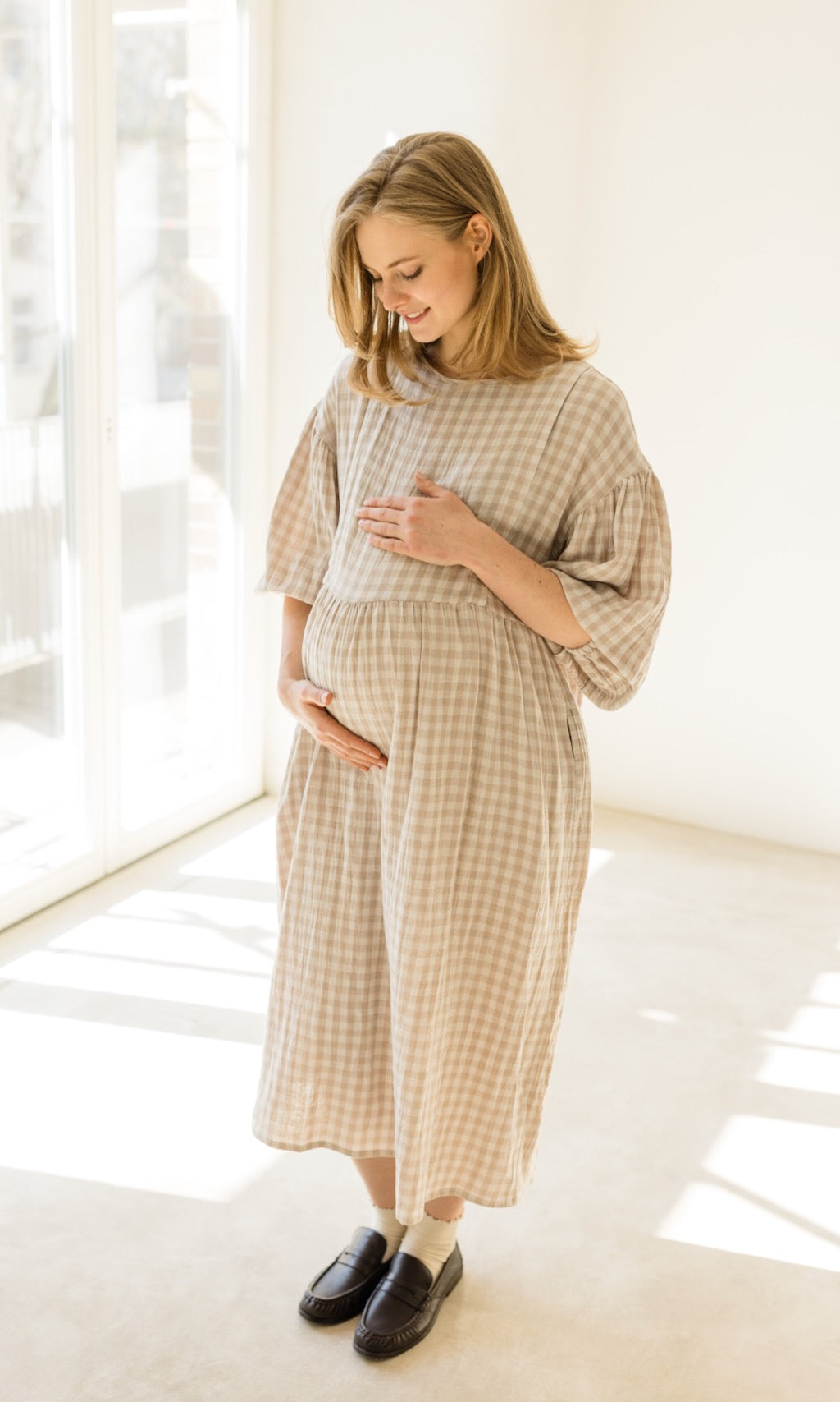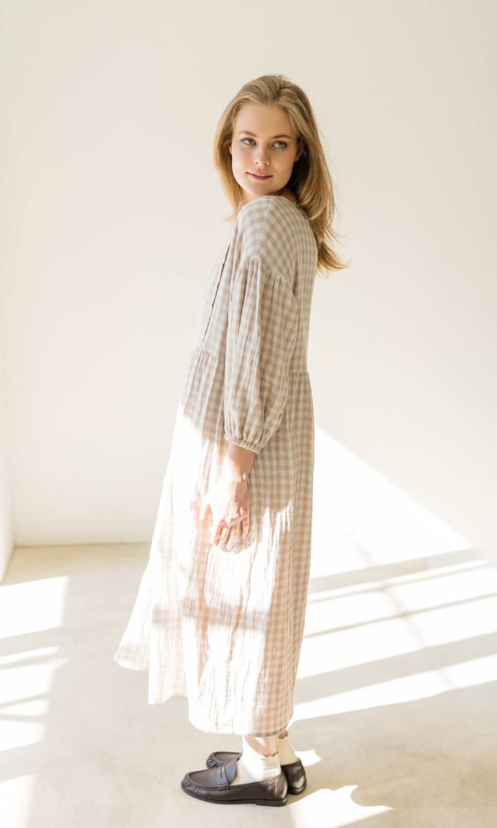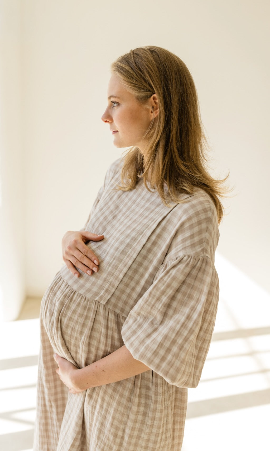 Wir haben unserem Karo-Kleid April ein Frühlings-Upgrade verpasst! Das luftige Musselinkleid im Oversize-Fit erstrahlt jetzt in einer neuen Farbe, einem cremefarbenem Karomuster, und gibt damit romantische French-Vibes.