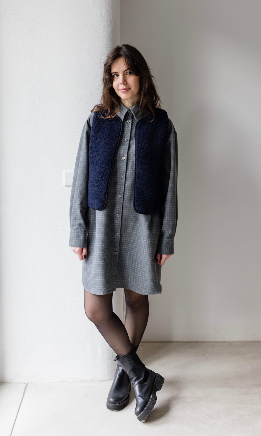 Und auch wenn unsere Kleider für die Schwangerschaft aus leichten Stoffen bestehen und sich ideal für laue Sommertage eignen, haben wir darauf geachtet, dass du sie auch an kühleren Tagen weitertragen kannst – dann in Kombination zum Beispiel mit unserer extra dafür entworfenen Schafwoll-Weste.