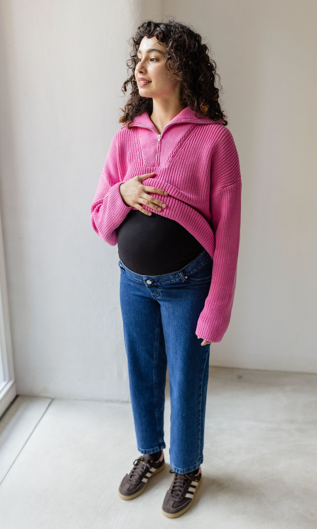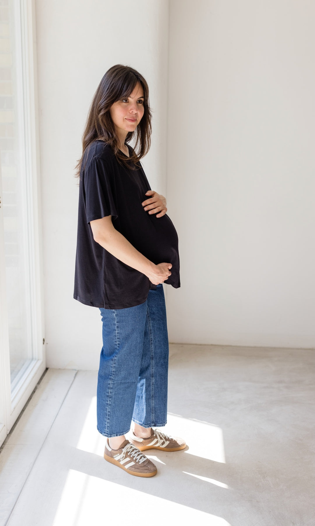 Unser zweites Jeans-Modell aus 100% Bio-Baumwolle ist da! Im angesagtem French Fit-Look mit Bauchbund und weiterem Bein und moderner gekürzter Länge ist unsere French Fit Jeans eine sehr modische Schwangerschaftsjeans. Die hohe Taille und bequeme Passform macht die French Fit Jeans dennoch zum idealen Begleiter für jeden Anlass. Wir haben auch diese Umstandsjeans in zwei Längen entworfen.