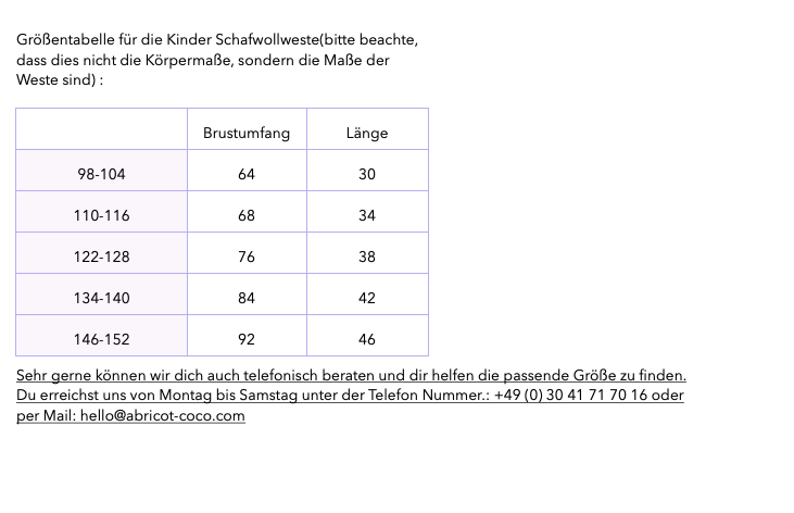 Kinderweste aus Schafwolle (1-8 Jahre)