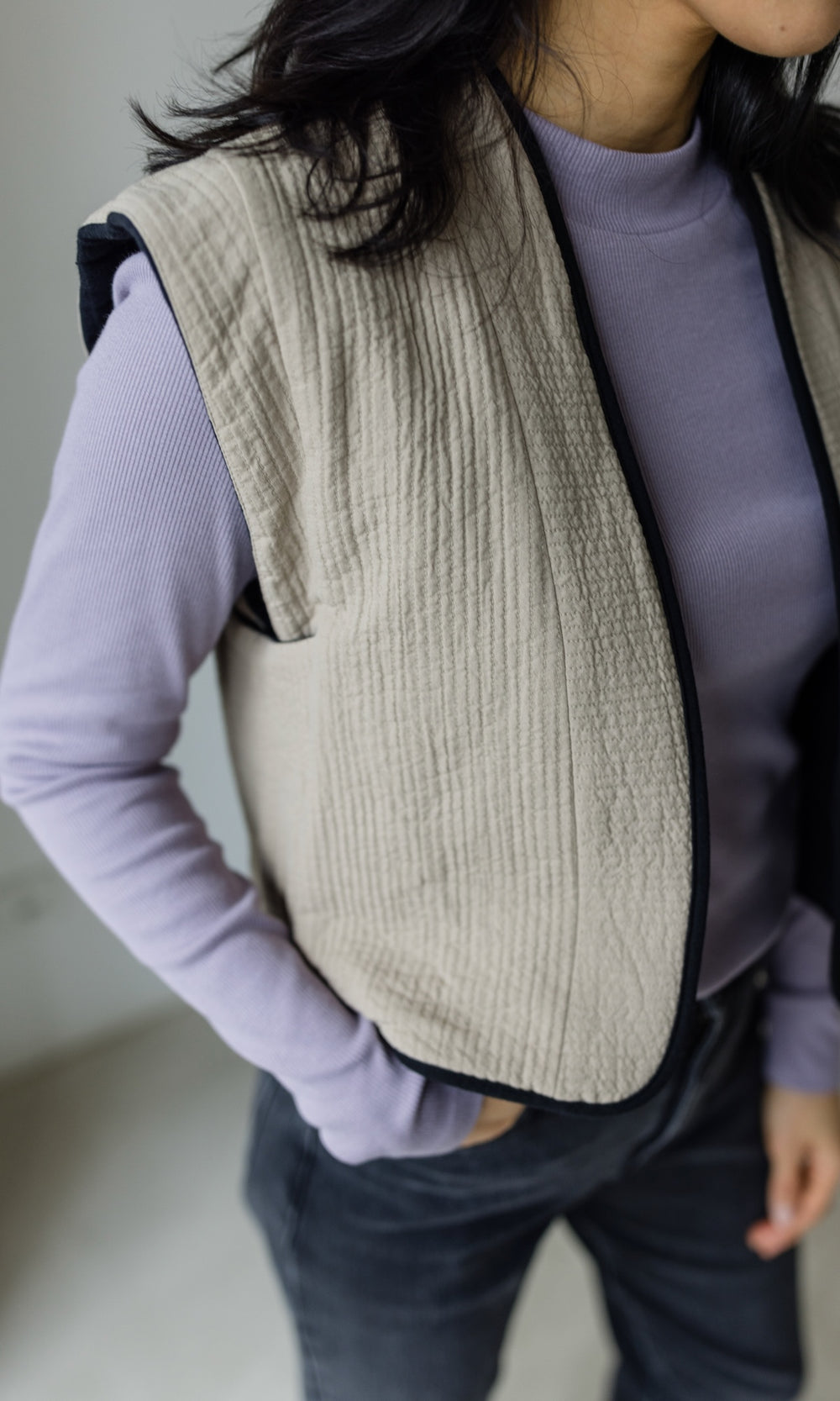Wendbare Steppweste Yumiko Schwarz/Creme