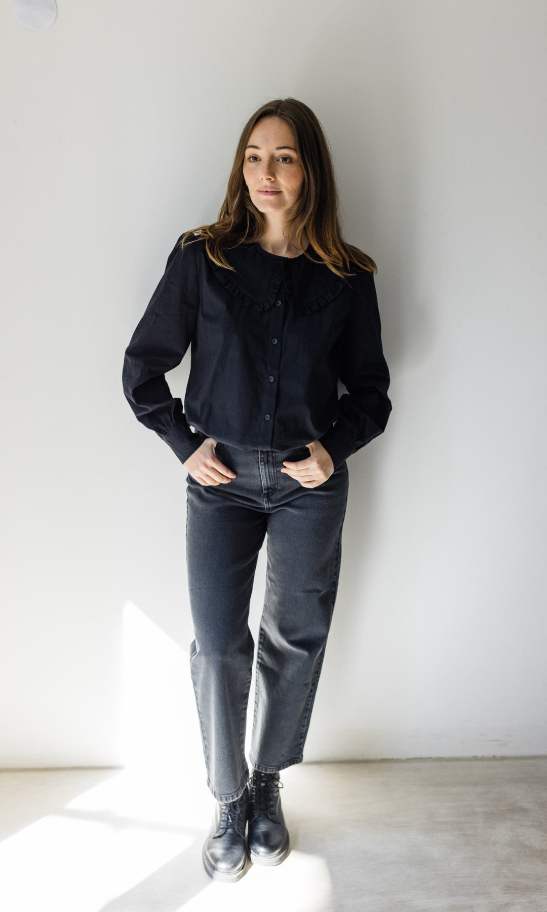 Eine weitere Besonderheit unserer Alice Bluse besteht darin, dass unsere Knöpfe aus recyceltem Harz bestehen.