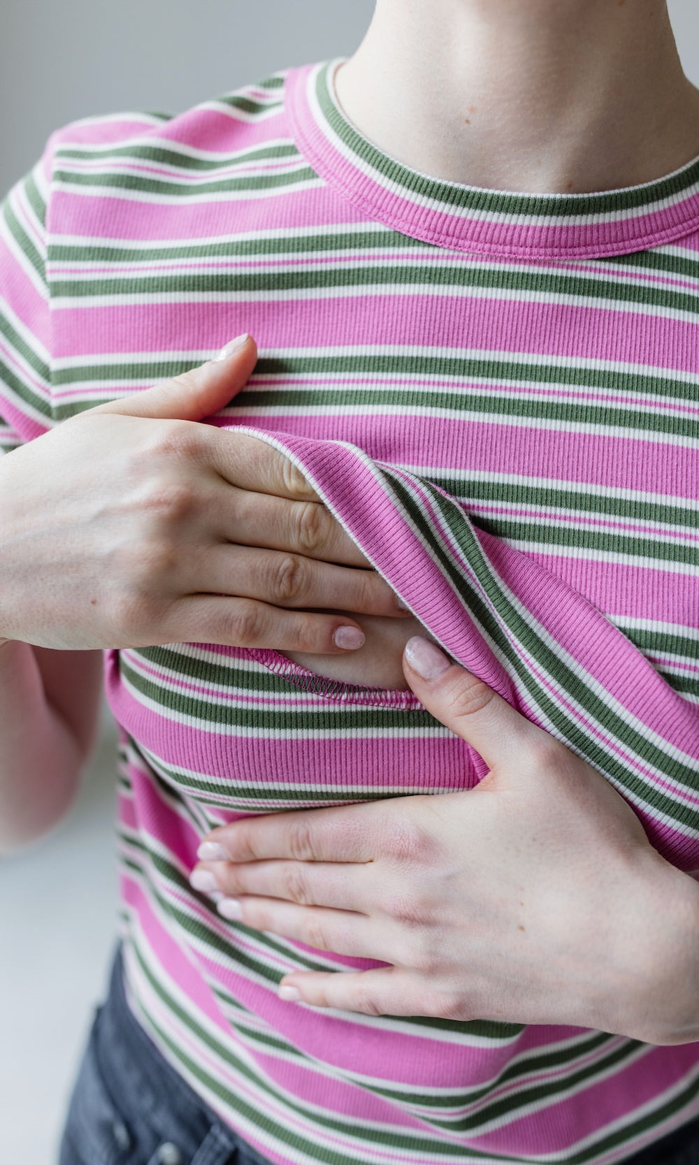 Die unauffällige Überlappung im unteren Brustbereich, die durch den Streifenlook nahezu unsichtbar ist, erleichtert dir das Stillen. So kannst du das Shirt während deiner Schwangerschaft, Stillzeit und darüber hinaus tragen.